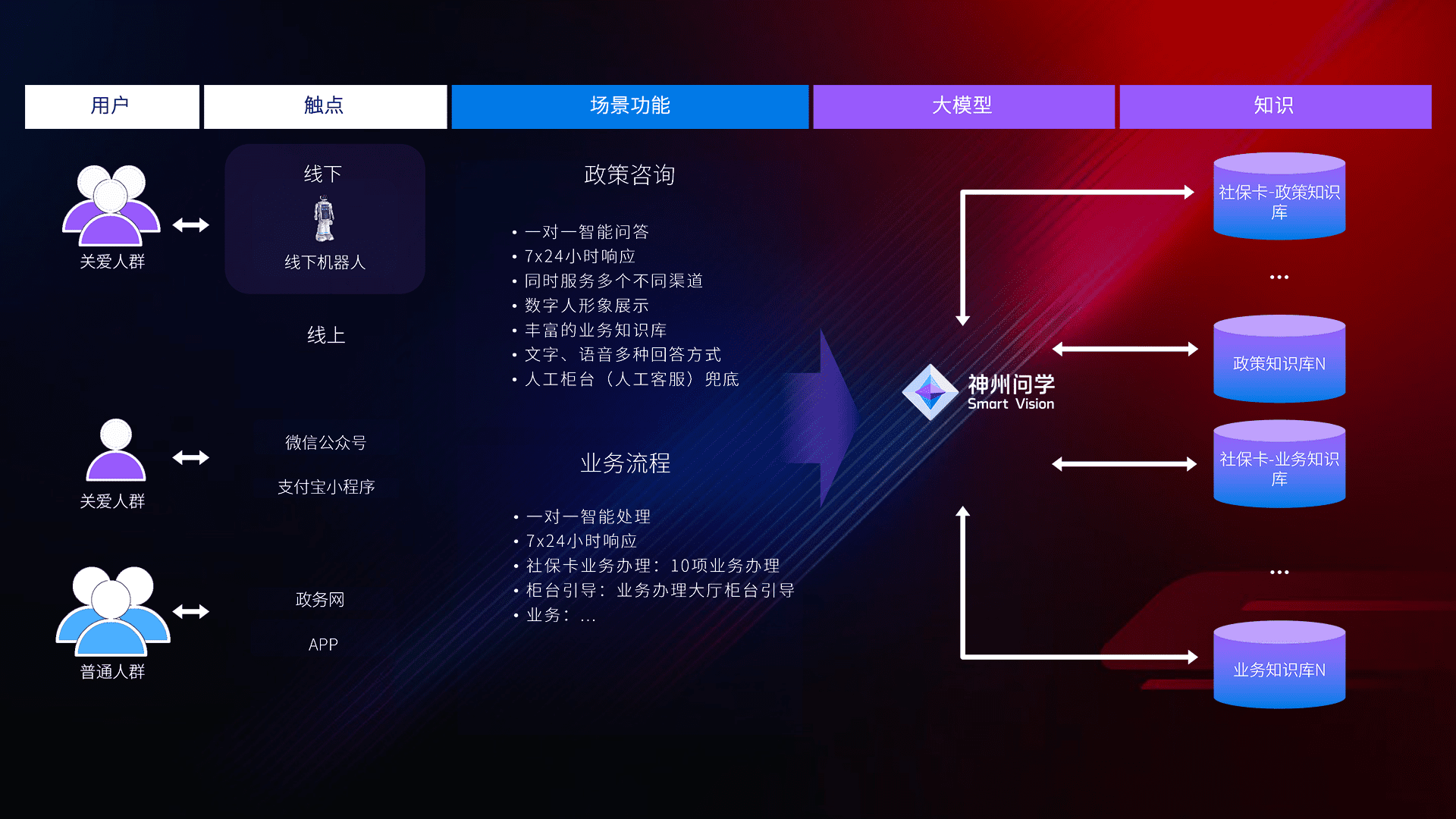 在服务大厅部署客服机器人,,,在线上应用和小程序配置客服数字人,,,724小时为群众解答常规问题,,客服机器人无法处理的,,转现场人工处理。。